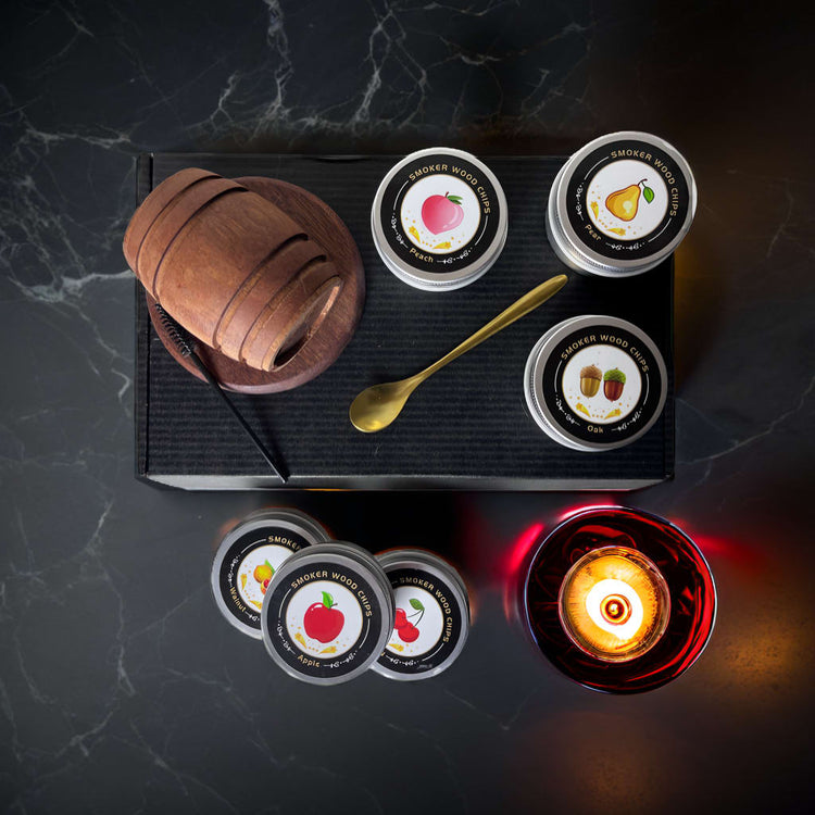 The EmberDisk Smoker is perfect for enhancing any drink with adjustable smoke intensity. Enjoy the creativity of mixing your favorite whisky with an array of wood flavors from the included chip boxes.